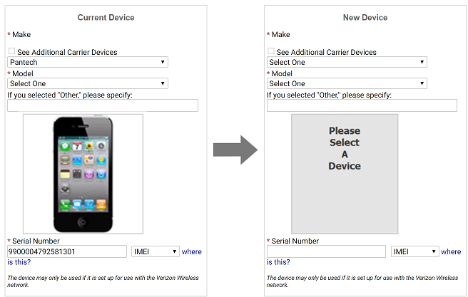 Enter information about your device including the ESN/MEID (you may click the How do I find this link for assistance).