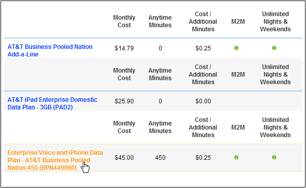 Your available rate plans are displayed with pricing that corresponds to your company's carrier contracts. You may select a plan for your new phone or wireless device. If you chose to use an existing device, you may update your existing service.