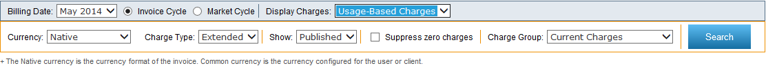Native currency is the currency used on an invoice. Common currency is a currency you select for display. For example, if you have carriers from the US and Great Britain, selecting a common currency of USD converts the display currency on invoices that were loaded in British pounds to USD.
