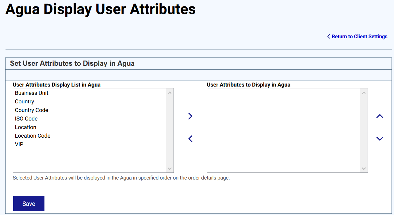 4. Select the user attributes that you want to display in AQUA from left box and use the right arrow to move it to the right.