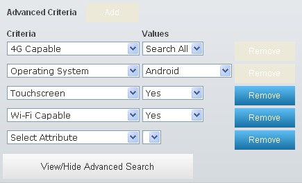Use the Add and Remove buttons to configure the Advanced Criteria you want to use in your search.