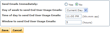 d. Enter the Window to send End User Usage Emails.