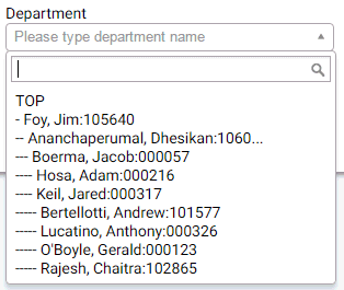 c. If the Use enhanced filtering for Departments property is set to Yes, advanced search widget is displayed instead of regular Department drop-down list, through out the application.