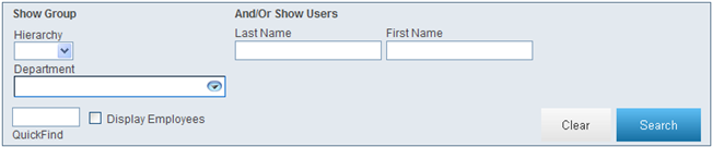 You may enter a Last Name and/or First Name and click the Search button to locate a particular employee (user).