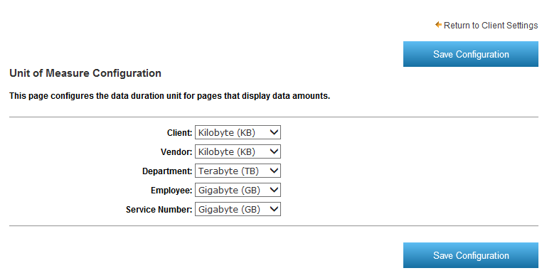 2. In the Client Settings menu, click the Unit of Measure Configuration link.