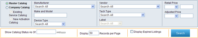 b. Enter or select your search parameters including Manufacturer, Make and Model, Device Type, Carrier, Tech Type, Label, Retail Price, and/or Adjusted Price.